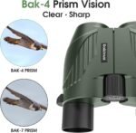 Compact binoculars,lightweight,BAK4 prism.Multiple layer coated aspherical lenses elements for light reflection and minimal distortion, better image brightness, contrast and quality, even in low light condition. The binoculars provides brighter,clearer images and more comfortable observation for you. Because of 99.68% Light transmission, You can easily get bright, contrast images, and non-chromatic aberration.