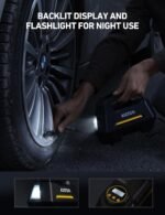 EASY NIGHTTIME USE: Equipped with a backlit screen and a flashlight, this tire inflator brings convenient use, even in dim environments. Its independent LED Button enables one-press flashlight operation. Great gifts for men and women.