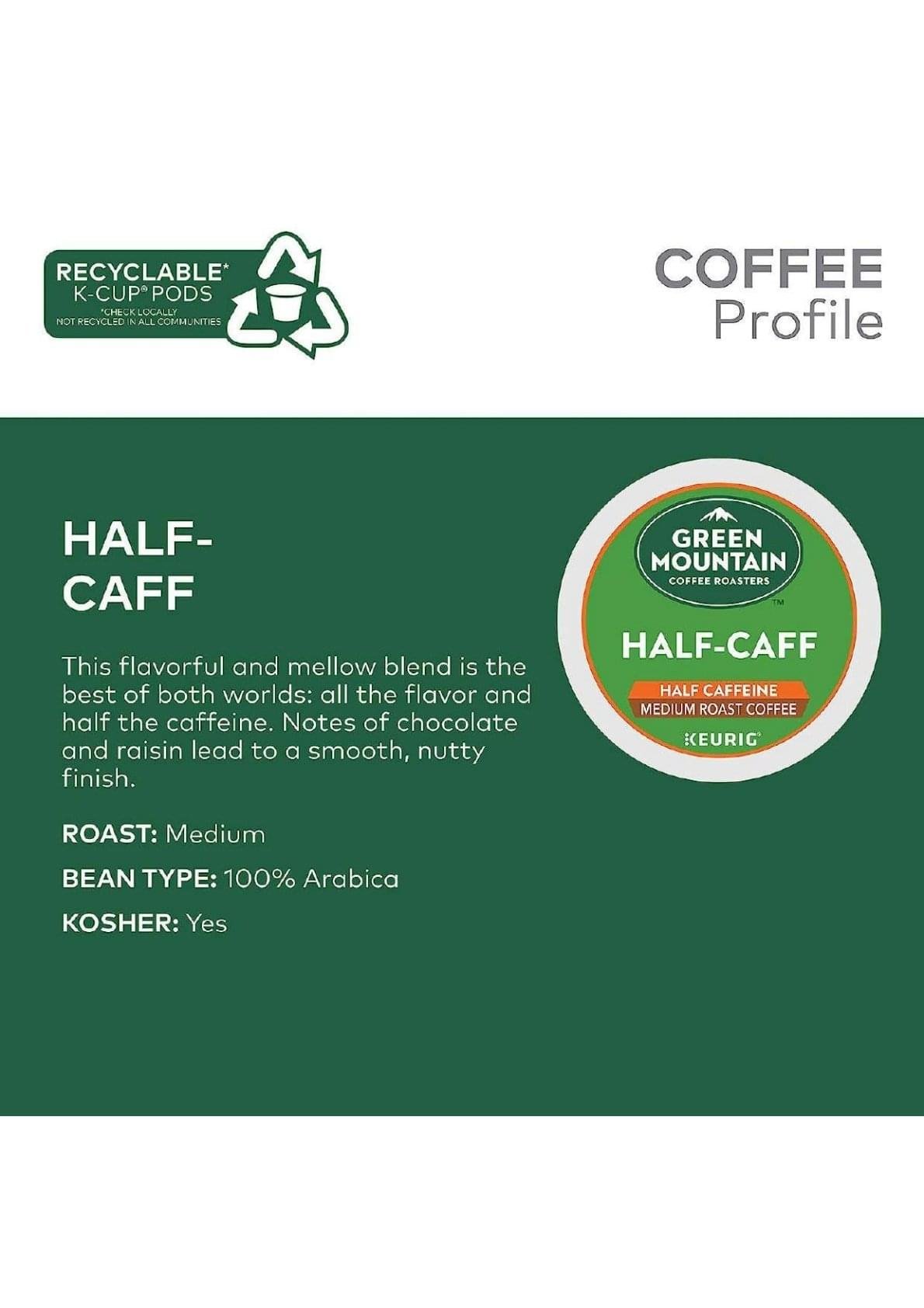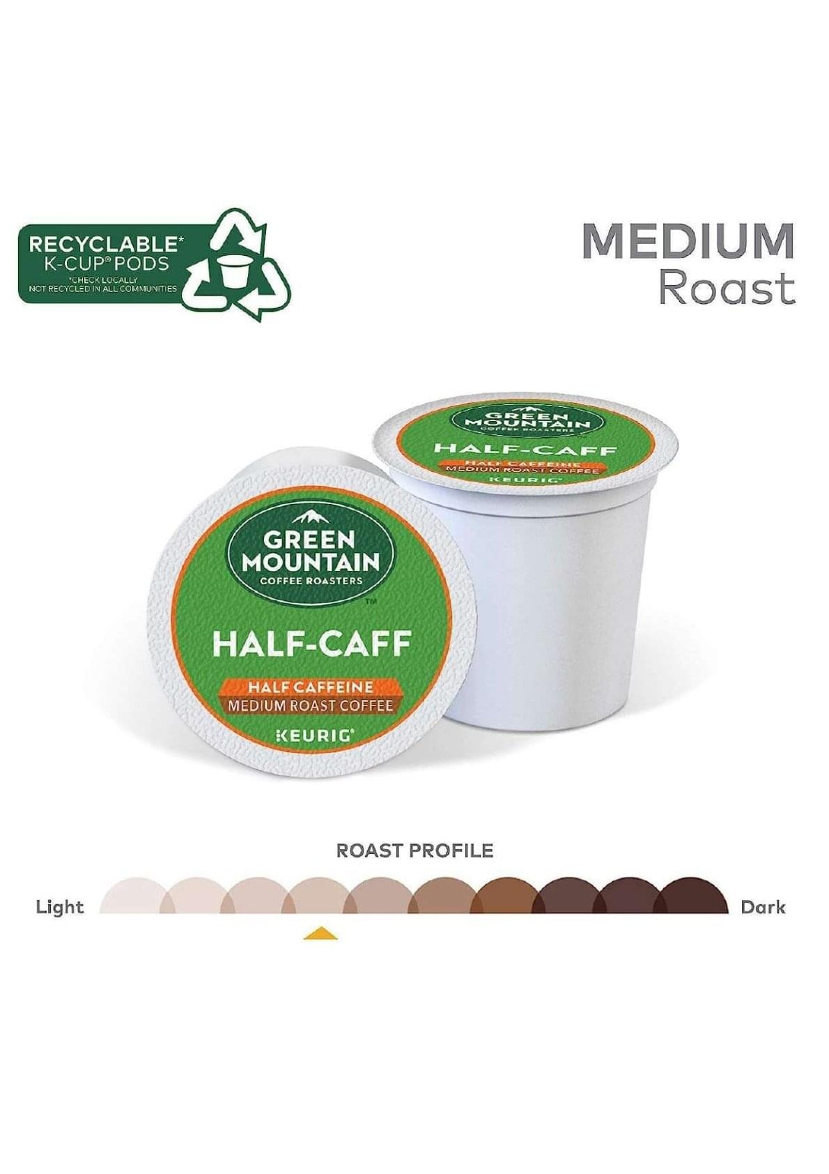 Green Mountain Coffee Roasters Half Caff Medium Roast Coffee 12 Count (Pack of 6), Total 72 Count