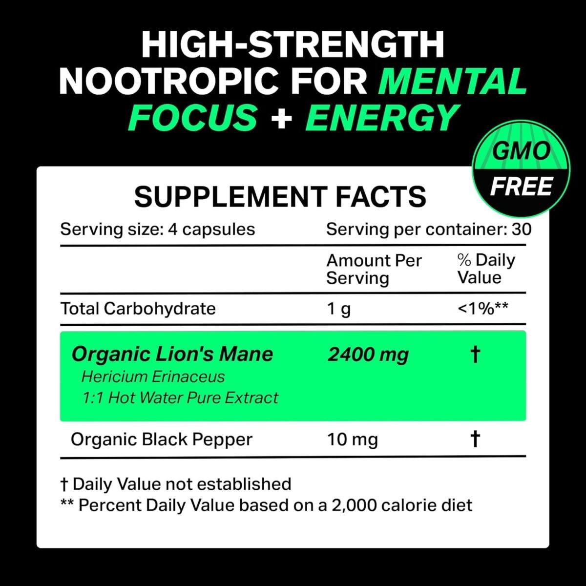 Max Nutrient Formula: Don’t be fooled by fewer capsules. We use 4 capsules as that’s what it takes to pack in maximum nutrients—2390mg organic lion’s mane powder extract, and black pepper to boost bioavailability. This is the key dose for brain support, memory, and focus.